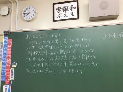おはようございます。雨の日の登校は大変です。今日も一日がんばりましょう。