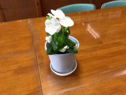 1、2、3学級の子たちが鉢に植えたニチニチソウを校長室に届けてくれました。ニチニチソウの苗は白とピンクがあり、校長室にプレゼントしてくれたのは真っ白なニチニチソウです。梅雨のジメジメした天気を忘れさせてくれるような清々しい白です。各学級の教室などにもひとつずつ配ってくれます。ありがとう。