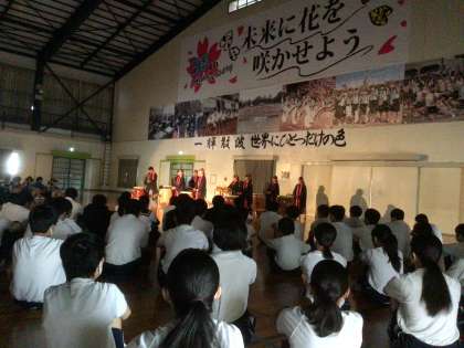 壮行会の様子です。上の2枚は太鼓部と、その演奏を聴く生徒の様子です。迫力のある素晴らしい演奏でした。太鼓部は7月8日(土)の大林自治区納涼祭での演奏が3年生にとって最後の舞台です。
