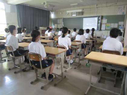 部活動壮行会を行いました。明日から始まる市内大会、コンクールに向けて、各部のキャプテン・部長が体育館で意気込みを語りました。その様子を1、2年生は教室で、リモート配信される映像で見守りました。これまで一番近くで一緒に練習してきた3年生の意気込みを胸に、大会でも全力で応援したいですね。頑張ってください。