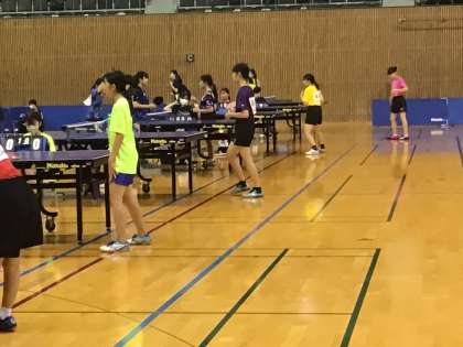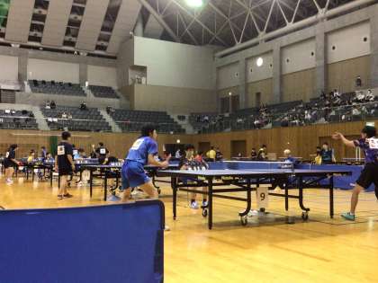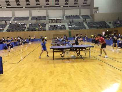 2日目の今日も蒸し暑い天気になりました。スカイホールでは昨日に続いて卓球の試合が行われています。がんばれ!
