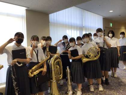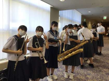 ロビーで楽器を準備して今からリハーサル室に向かいます。落ち着いて練習通りの演奏をしてくださいね。遠くの会場まで送ってくださり、演奏を聴いてくださる保護者の皆様、ありがとうございます!