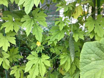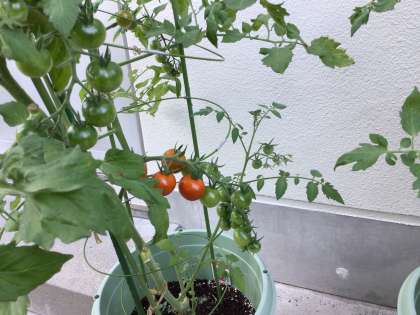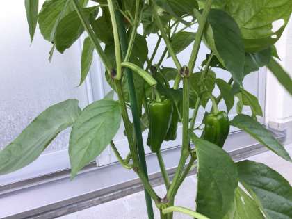 1,2,3学級で育てている夏野菜が大きくなってきました。ピーマン、ミニトマト、オクラ、ゴーヤ、キュウリ。生徒ががんばって水やりをしています。