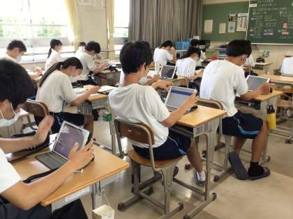 6時間目に教室をのぞいた時は、夏休み中の高校体験入学の行き方について調べていました。下調べをしっかりとしておくと当日慌てなくて済みますね。