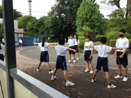 おはようございます。今日も暑いです。今週は暑かったり雷雨だったりと天気が目まぐるしく変わります。朝から蝉が盛大に鳴いています。今週も来週も危険な暑さの日が複数日予想されるため、部活動は午後を避けて朝の涼しい時間に行います。弓道部では1年生を先輩たちが指導していました。