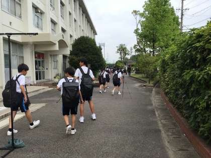 登下校時、マスクを外している生徒は徐々に増えてきました。しかし、まだまだはめている生徒が多いです。今日の下校時は全員がマスクを外して下校していきましたが、違和感を感じるお子さんは、やはり途中でマスクをはめてしまうかもしれません。根気よく伝えていくことが大事だと感じています。