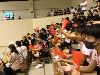 応援にも力が入ります。第3試合を控えている男子バレー部も応援しています。たくさんの保護者の方が応援してくださっています。がんばれ!