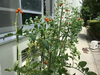 夏休みに入り10日ほどが経ちました。元気に休みを過ごしていますか。1、2、3学級の子たちが育てている野菜も暑さの中頑張っています。上の写真から枝豆、ミニトマト、唐辛子です。