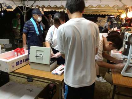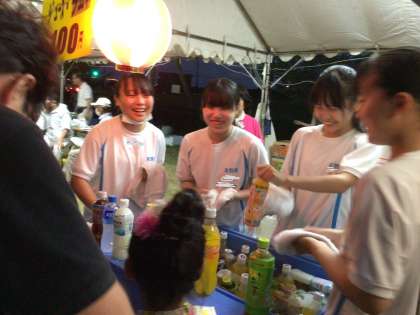 輪投げ、かき氷、ジュース売り場、餃子の夜店、綿菓子など、お客さんの列ができていたり、完売したりするなど大人気でした。地域の一員としてこうした活動に積極的に参加することはとても素晴らしいです。おつかれさまでした!