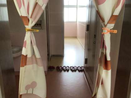 いつも感心します。トイレのスリッパが乱れているところを見たことがありません。これは2年生のトイレです。