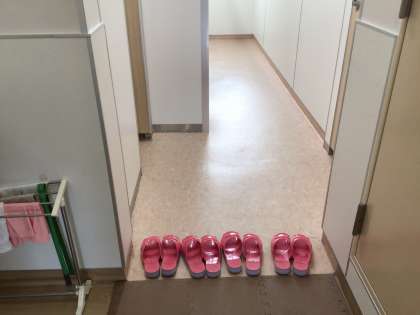 これは3年生のトイレ。学年が進んで学校生活に慣れてくると、こうした細かいところがいい加減になってくることがありますが、他学年同様、いつ見てもきれいです。昨日の生徒指導訪問でも褒められました。いろいろな人が使う場所がきれいに整っているのは一人一人が気を配っている証拠ですね。