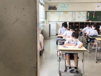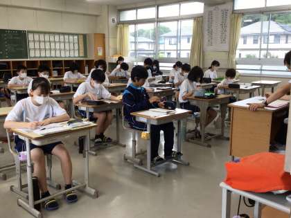 静かにテスト勉強が始まっています。1年5組の様子です。