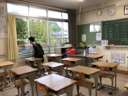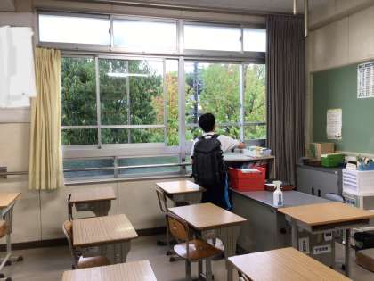 7時40分、生徒が教室に来ました。カバンを背負ったまま窓を開ける生徒の姿を見つけました。ありがとう!見えないところでみんなのために自分の時間を使う、その姿が素晴らしいです。