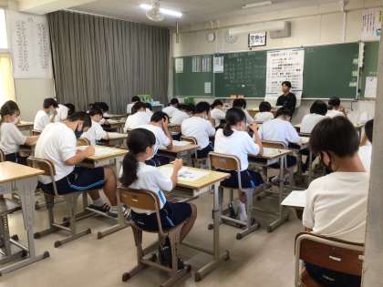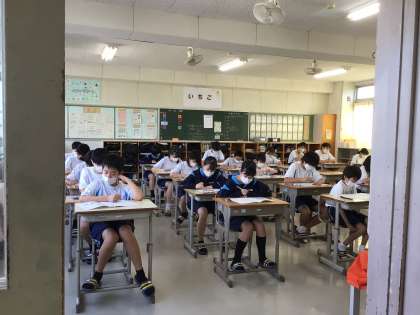 今日でテストが終わります。4時間目の様子です。最後の教科です。この時間が終わると期末テスト終了です。見直しまでしっかりして頑張ってくださいね!