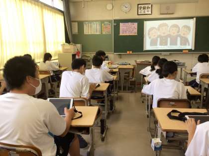 タブレットのformsを使って活動の振り返りをしました。ちらっと覗かせてもらいましたが、生徒は「班の子とたくさん話せて楽しかったです」「自分のことを振り返ることができました」「人との関わり方や会話の仕方がわかりました」と感想に書いていました。