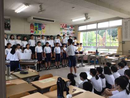 少しずつ三部の響きが感じられる歌になってきました。1年1組の教室に1年2組の生徒が来て、互いの合唱を聴き合っていました。ここからですよ!がんばれ、1年生。