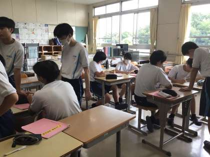 10月27日(金)が体育祭です。各学年、各学級、生徒会、級長会などが動き始めました。放課の一コマです。時間を見つけて頑張っています。