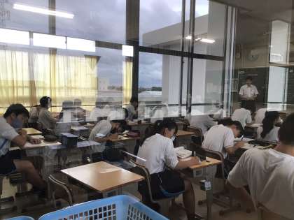 上の2枚の写真は3年生の数学。一番下の写真は同じく3年生の理科の授業です。疲れ気味の生徒もいると思いますが、ここでも「さすが3年生」。落ち着いた雰囲気で授業が進んでいました。中には、先生の説明を頷きながら聞いている生徒もいました。1時間1時間の授業を大切にしてくださいね。