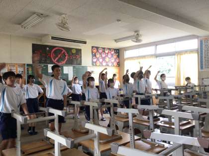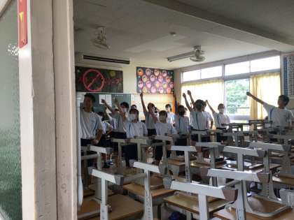 6時間目、2年生のフロアには軽快な音楽が流れ、いくつかの学級が体育祭に向けてダンスの練習をしていました。体育祭では、2年生はダンス、3年生はダンスとソーランを演じます。みんなで創り上げる演技を楽しんでくださいね。まずは頑張って振付を覚えましょう。