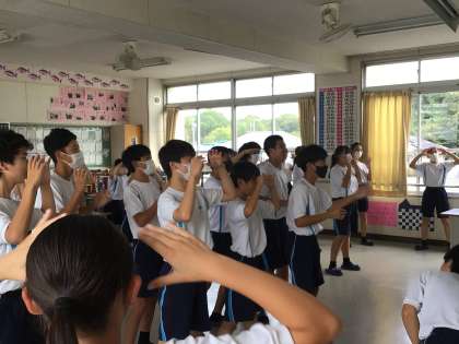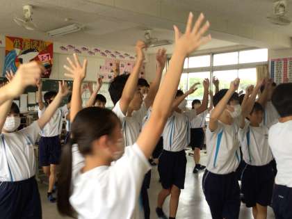 ダンスを練習している2年生教室の様子です。みんなで楽しそうに練習しています。お手本の動画はタブレットで見られるようになっています。家でも張り切って練習してくださいね!