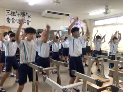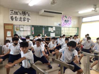 完成が楽しみです。お手本の動画はタブレットでも見られるようになっています。時間があるときに家でも練習できますね。3年生にとって最後の体育祭。39回生の力を結集して魅せてください。期待しています!!