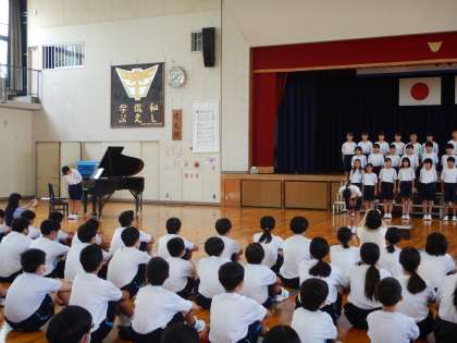 今日の5,6時間目に1年生の合唱フェスティバルを体育館で行いました。音楽の授業で習った三部合唱の曲「大切なもの」を自分たちの教室でも練習して発表します。4年ぶりの合唱の行事です。