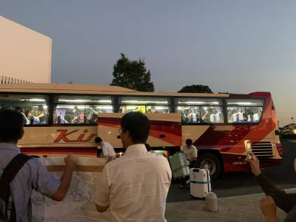 先週からイギリスに行っていた豊田市中学生海外派遣団が帰着しました。スカイホールにバスが到着するのを保護者の皆様や学校関係者、教育委員会の関係者が出迎えました。