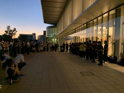 一回り逞しく成長した姿で各中学校を代表して参加した28名全員が無事帰着しました。写真が暗くて見にくいのですが、「翼をください」を日本語と英語で合唱してくれました。綺麗なハーモニーで、海外派遣を通じてメンバーの絆が深まったことを感じました。