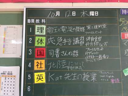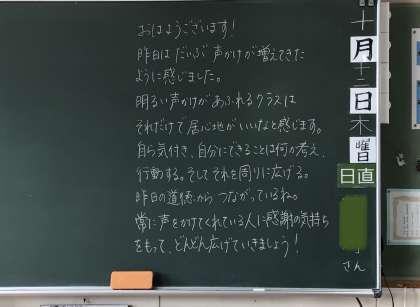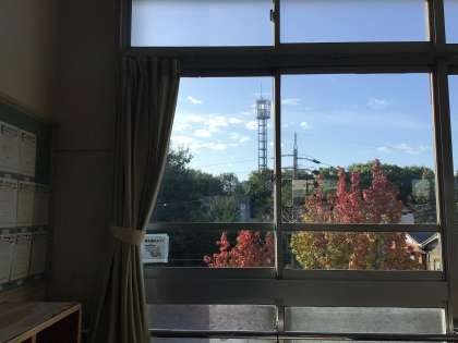 おはようございます。爽やかな朝です。どこからか金木犀のいい匂いが漂ってきます。教室の窓からは、色づき始めた木が見えます。今日も元気に頑張りましょう!
