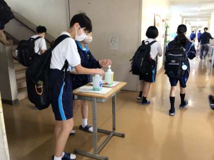 生徒が登校してきました。7時40分。1番乗りの生徒たちです。もう身についている朝の習慣。まずは手洗い場に向かい、そのあと教室にいきます。これから風邪やインフルエンザがますます心配な季節になります。元気に過ごしてほしいです。
