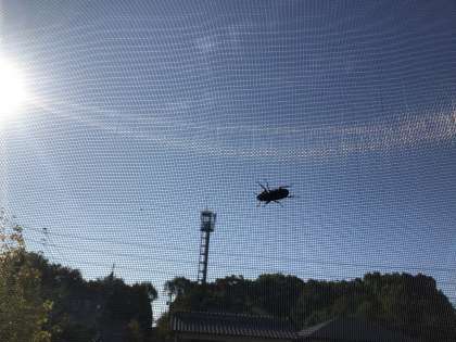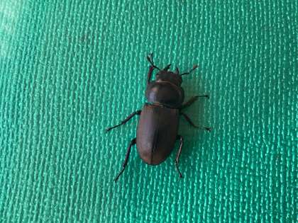 2階にある校長室。網戸外側にお客さんが。「これはひょっとして」と思い、わざわざ椅子の上に乗って確認し、タブレットで写真を撮って校長室の机にお迎えしました。小さいけれど立派なクワガタです。