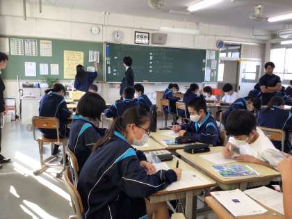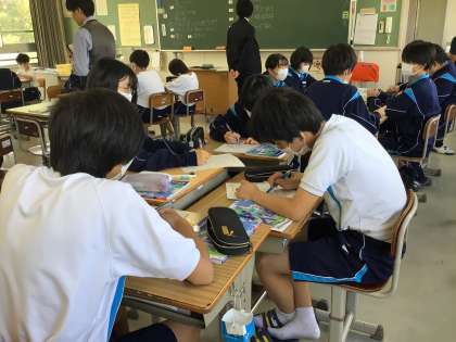 5時間目に1年5組で教育実習生が道徳を行いました。内容は「社会参画・公共の精神」です。