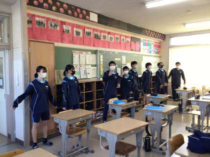 2年生教室ではダンス練習の真っ最中。1時間目の授業が始まる前のわずかな時間を使って練習をしていました。リーダーが前に出てみんなに声をかけているクラスもあります。学校行事はみんなで盛り上げるものですね。そこから楽しさが生まれてきます。