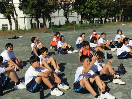 1、2時間目の学年練習の様子です。1年生は長縄跳び、開会式や閉会式の入退場の位置確認、リレー練習などを行っています。