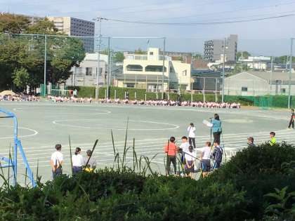 今日は、開会式、閉会式と長縄跳びの練習です。