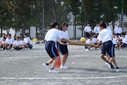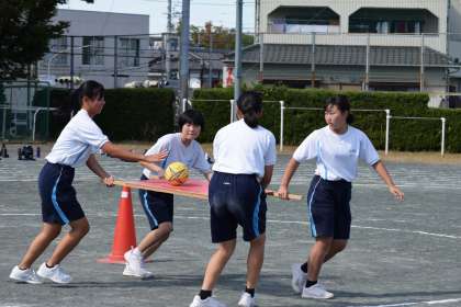 2年生の学年練習の様子です。学年競技はボール運び。なかなか難しいです。慎重かつ素早く運ばなければいけません。チームワークが鍵を握ります。