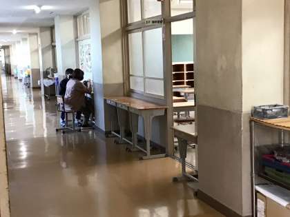 本校では定期テスト週間に合わせて教育相談週間を設けています。今回が3回目の教育相談です。担任の先生と生徒は、日頃、何気ない会話をしたり「末中っ子」にコメントをしたりしてやり取りをしていますが、こうして1対1で話す機会を改めて設定することで日頃言えない話もでき、生徒の安心感につながるのではないかと思います。