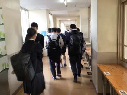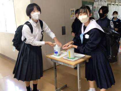 教室に入る前の手洗いの様子です。石鹸をつけたら手洗い場で洗い流します。給食前もしっかりと手洗いをしてくださいね。健康が一番。