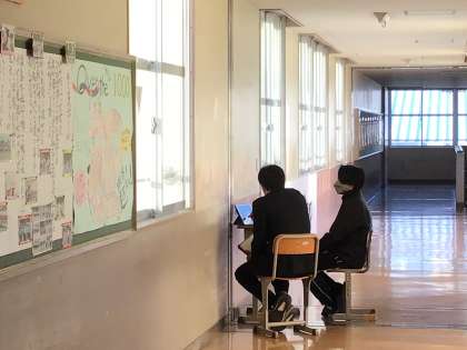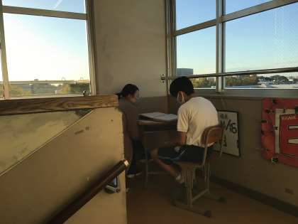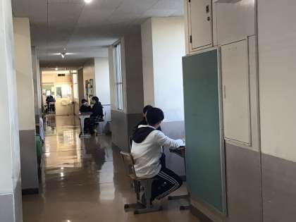テスト週間に合わせて先週から行っている教育相談の様子です。教育相談期間は日課を工夫し、6時間授業と掃除を行った後に時間を生み出して教育相談を実施しています。担任と生徒が個別で話をしている間、他の生徒は静かにテスト勉強を進めています。
