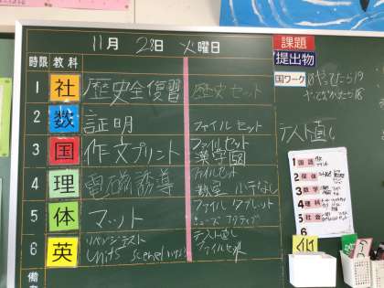 2年生教室の様子です。どのクラスも時間になるときちんと席に着いて活動を始めています。今日もいろいろな授業がありますね。頑張りましょう!