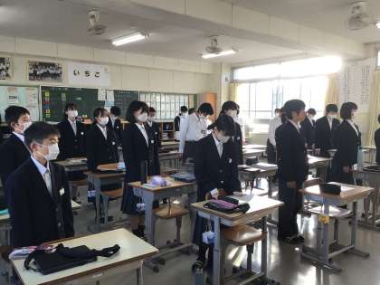 1年生教室の様子です。今朝、1年生の各学級で後期中間テストの個票(結果)を配りました。生徒からは「うわー」「いらない‥」といろんな声が聞こえてきました。大切なのは次に生かすことです。テスト直しをしっかりやって、苦手な部分を早めに理解することですよ。
