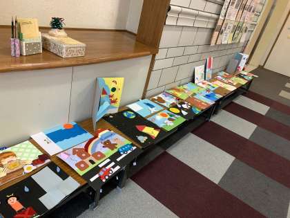 見るだけではなく小さい子たちに遊んでもらうために置いてあります。下の弟妹がいるご家庭だけでなく、保護者の皆様もお近くに立ち寄った時にぜひご覧ください。アンケート用紙を交流館の方が準備してくださいました。小さい子に喜んでもらえたり、感想を書いてくださったりすると生徒たちの励みになります。