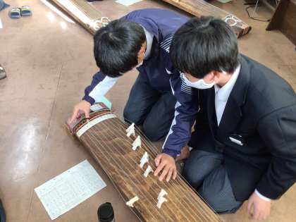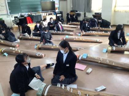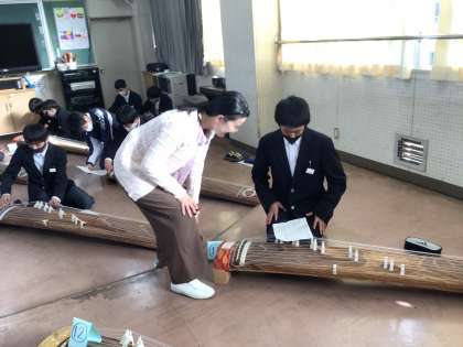 1年3組の様子です。生徒の中には経験者もいて、友達に教える姿もありました。感想は?「難しいです!」「楽しいです!」だそうです。貴重な体験ですね。