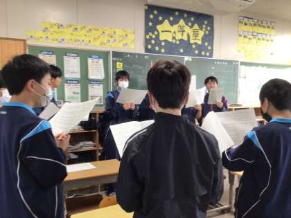 1月22日からの自然教室。2年生にとって成長の大きな一歩につながる行事になるといいですね。立志の会で歌う合唱練習も各学級で始まりました。「いのちの歌」心に染みるとてもいい歌です。