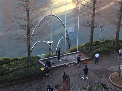 昇降口付近では3年生のボランティアの生徒たちが落ち葉掃きを続けてくれています。メタセコイアの落葉がもう少し続きます。自分の時間をこうしてみんなのために使っていることが素晴らしいですね。ありがとう。