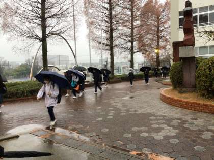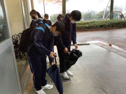 おはようございます。1ヶ月ぶり?それ以上でしょうか、久しぶりの雨です。雨の日の登校は憂鬱ですね。ですが生徒たちは爽やかな挨拶で登校してきました。校舎に入る前に立ち止まり、傘をトントンやって雨粒を落としてから昇降口に入ってくる生徒たち。末中の生徒たちは素敵です。