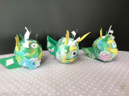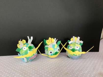 来年の干支(えと)は辰(たつ)です。1、2、3学級の子たちが干支の置物を作っていました。土台に貼ってある和紙は生徒たちが染めたものです。紙に木工用ボンドをつけてペタペタと貼って作りました。作品ひとつひとつに個性を感じます。2枚目の写真は少し横から撮ったもの。かわいくできました!
