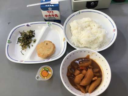 1/9今日の給食 公開日 2024/01/09 更新日 2024/01/09 教育活動の様子 2024年初めての給食は、根菜の味噌煮、豆腐しんじょ、牛乳、みかんゼリー、ご飯、そして七草ご飯の具です。七草の具をご飯に混ぜていただきます。
