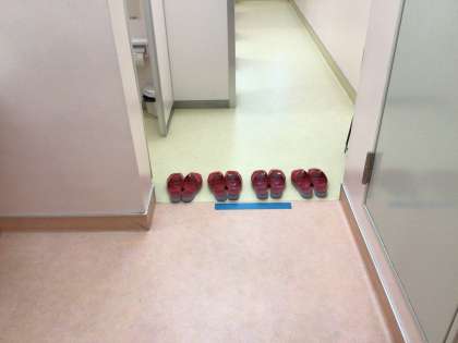 おはようございます。日差しがない朝は寒く感じます。登校前の風景です。光っている廊下、揃っているスリッパ。今日も充実した学校生活にしましょう。