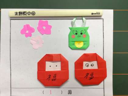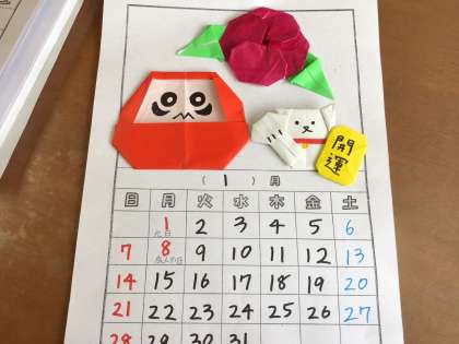 1、2、3学級の子たちが毎月カレンダーを届けてくれます。どんなカレンダーかいつも楽しみにしています。作る子によってデザインは様々で、上の写真は校長室にもらったもの、下の写真は教頭先生がもらったものです。縁起の良い招き猫や達磨など、お正月らしいデザインです。今月も大事に飾らせてもらいますね。ありがとう!